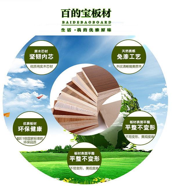 百的寶健康板材品牌涉獵業(yè)務(wù)范圍廣泛:E0、E1、凈醛級環(huán)保系列家裝產(chǎn)品,酚醛膠以及三聚氰胺防水膠系列產(chǎn)品等,同時還可根據(jù)客戶要求訂做加工。是業(yè)界享有較高聲譽的板材供應(yīng)商。
