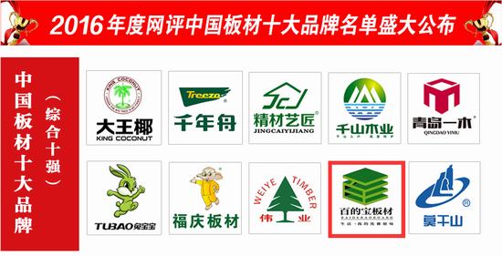 在此次權(quán)威評選中,百 的 寶憑借著專注做健康板材的匠心,強大的品牌實力和市場占有率獲得消費者和專業(yè)人士的一致認可,成功蟬聯(lián)“2016中國板材品牌”的榮譽稱號。