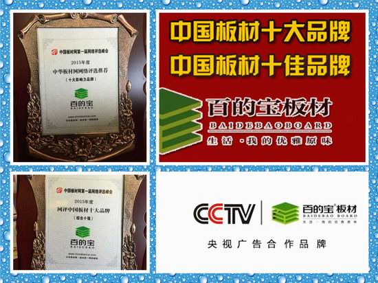 熱烈慶祝百的寶成功蟬聯(lián)“中國板材品牌”稱號!