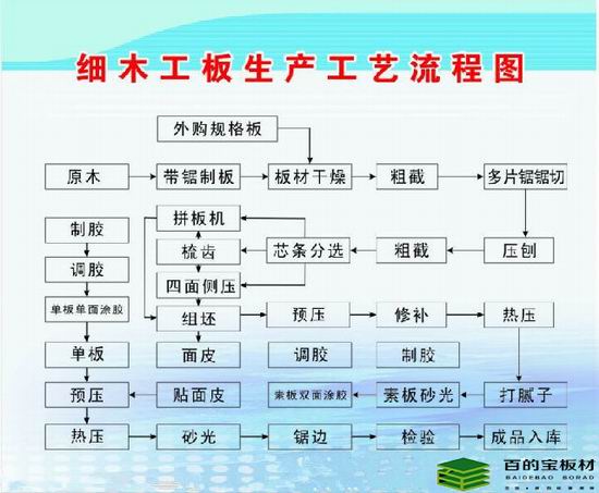 百的寶此次投放市場的細木工板,采用優質南方杉木制作,面板采用奧古曼貼面,采用多次砂光,兩次冷壓、兩次熱壓等多道先進生產工藝,產品具有平整度好、色差小、輕質、不易變形等特點,可廣泛應用于室內裝修和家具制作。