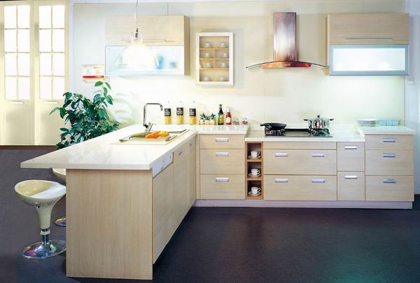 比如U型櫥柜,可以將水池和灶臺分別設置在它的兩側。這樣的距離也不會太遠,背對背。