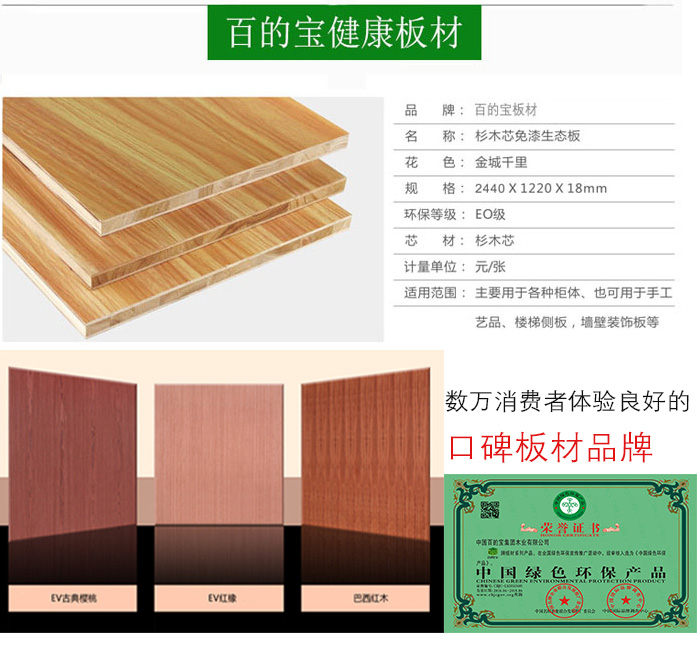 百的寶生態(tài)板的結(jié)構(gòu)合理性和生產(chǎn)過程中的精細(xì)加工,大大提高木材的物理力學(xué)性能,其使用范圍更廣闊,木材利用更科學(xué)合理。